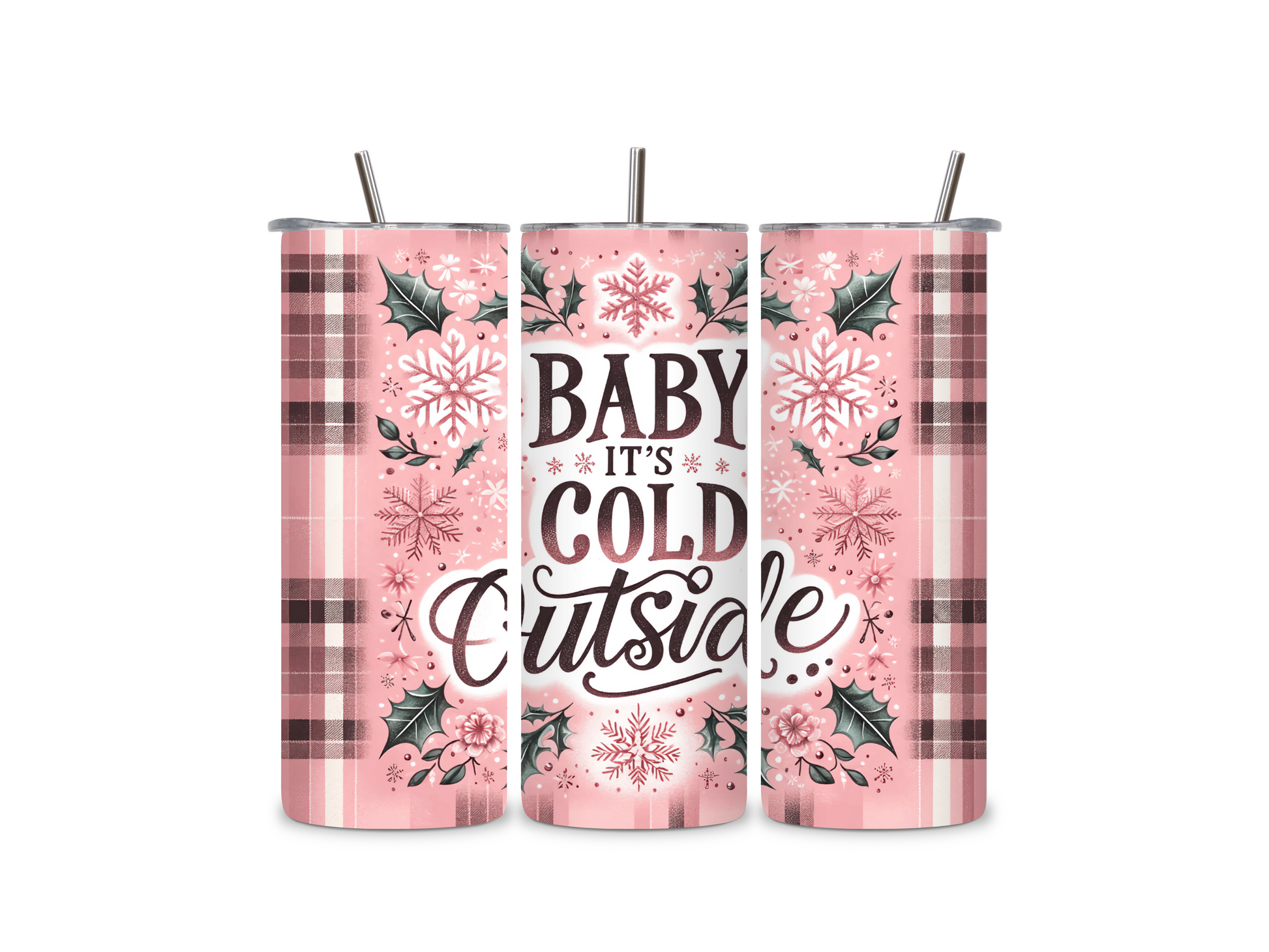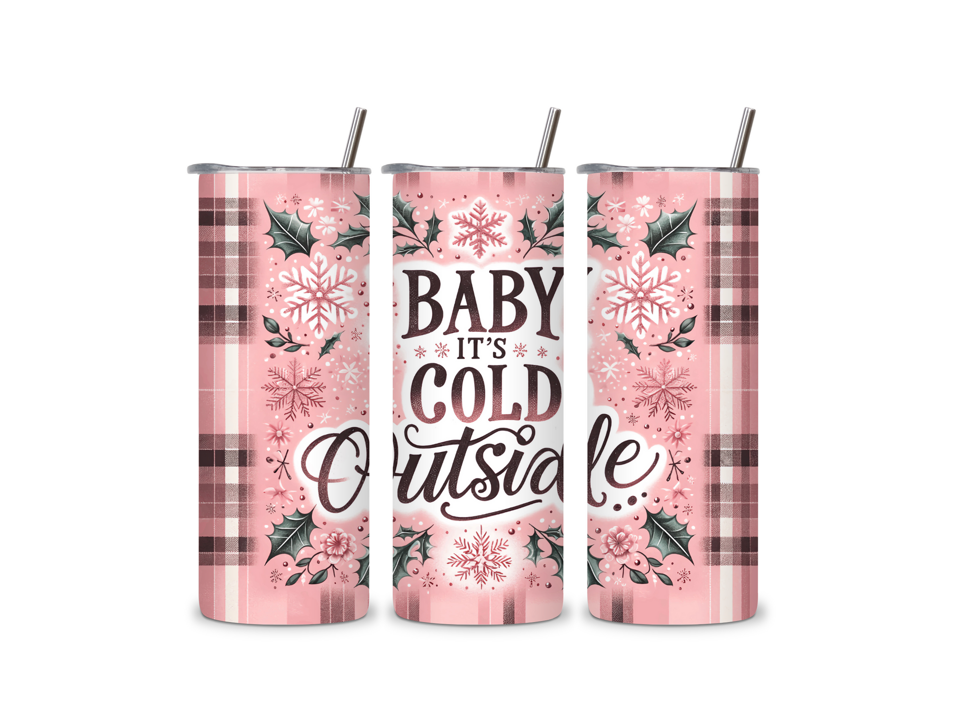 This tumbler features a trendy design with "Baby It's Cold Outside" written in beautiful pink letters. Its double-walled stainless steel construction keeps your drinks cold for hours. The skinny tumbler design makes it perfect for on-the-go use and fits in most cup holders.